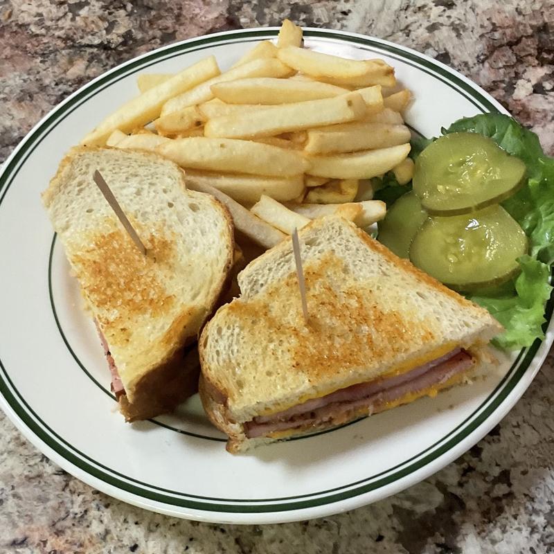 All sandwiches are served with a choice of 1 side, homemade soup (after 11:00 AM), crisp salad, French fries, onion rings, fried zucchini, cole slaw, or fresh fruit | Add sweet potato fries or seasoned fries as an upgrade for an additional +$0.70